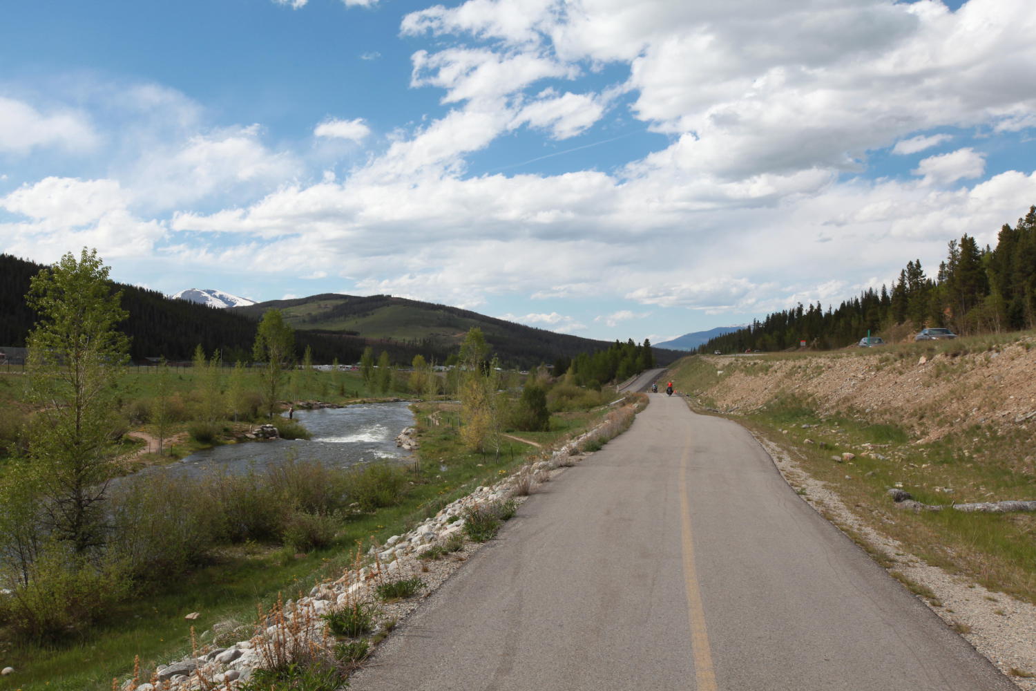 The rest of the day passed in a blur. We tore down the other side of the mountain at speeds between 30 and 45 MPH. I even managed 6.5 miles without pedaling. I probably would have made the whole 10 to Breckinridge if not for some traffic that required me to hit my brakes. The day’s second bike path meandered downhill along the Blue River out of Breckinridge. We covered the final 10 miles in less than half an hour.
