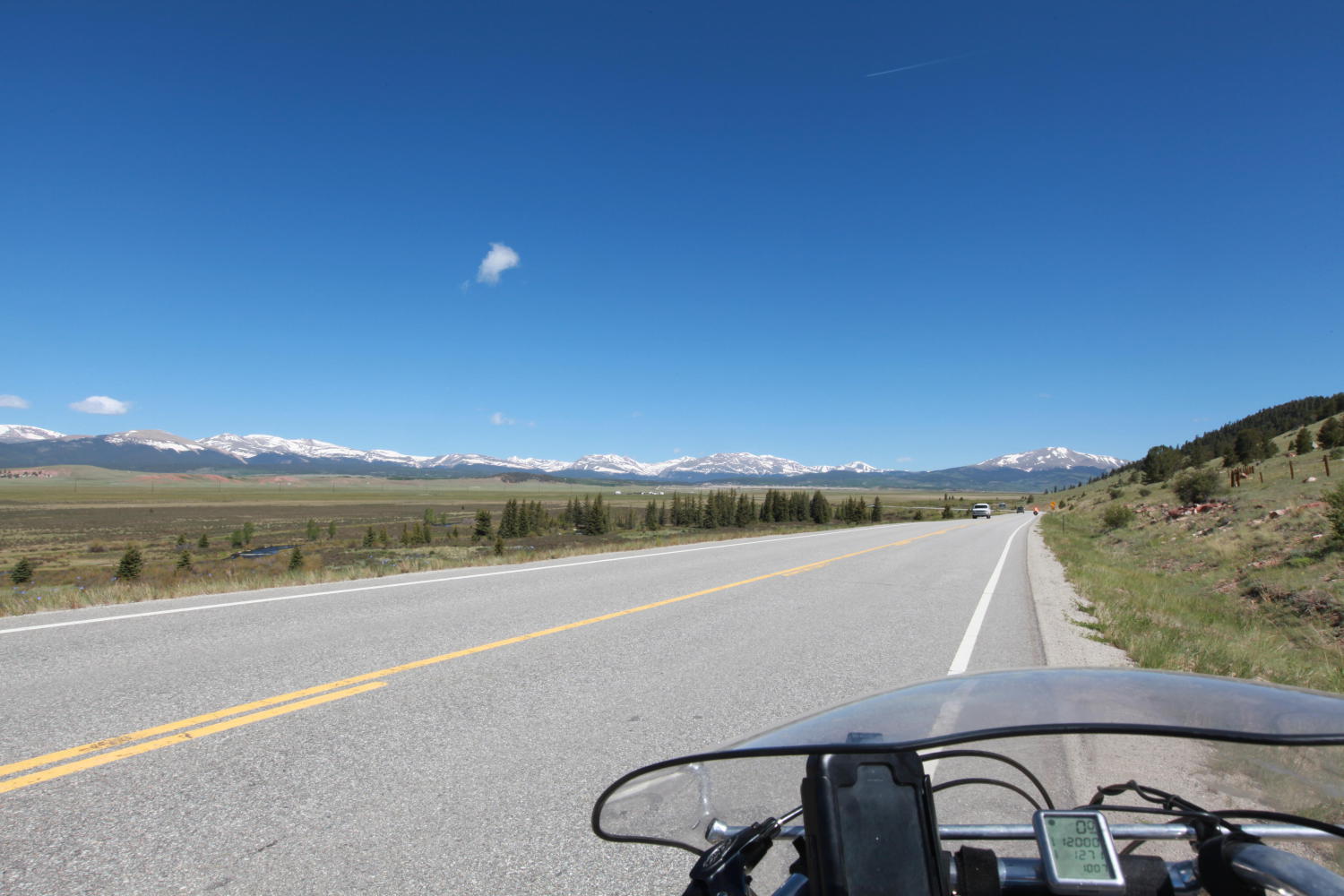 Much of the morning was a slow grade with shifty winds. The ride wasn’t particularly difficult at first, but as we approached Fairplay, the gravel trucks got a little insane. They don’t slow down for anything. Whenever a car was oncoming while I had a truck approaching in my rear view mirror, I had to shuffle way off to the side. I continue to be amazed at the insulation an enclosed car/truck gives the driver in terms of what a close pass feels like to a cyclist.