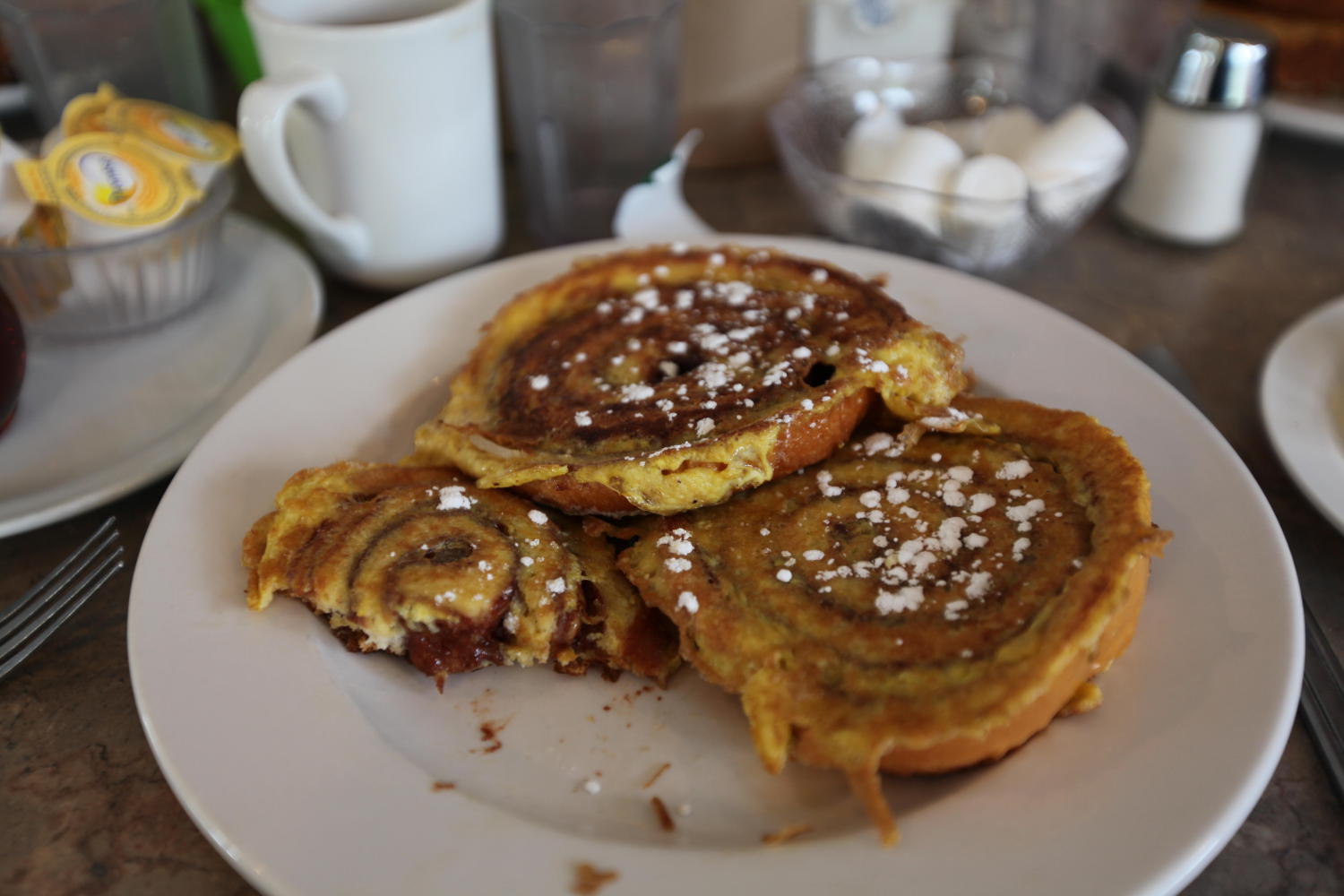 We backtracked from the campground to Saratoga for breakfast. I had a cinnamon roll sliced thin and done up french toast style. I was pretty decadent. But then again, I’m riding my bike across the country, so who are you to judge?