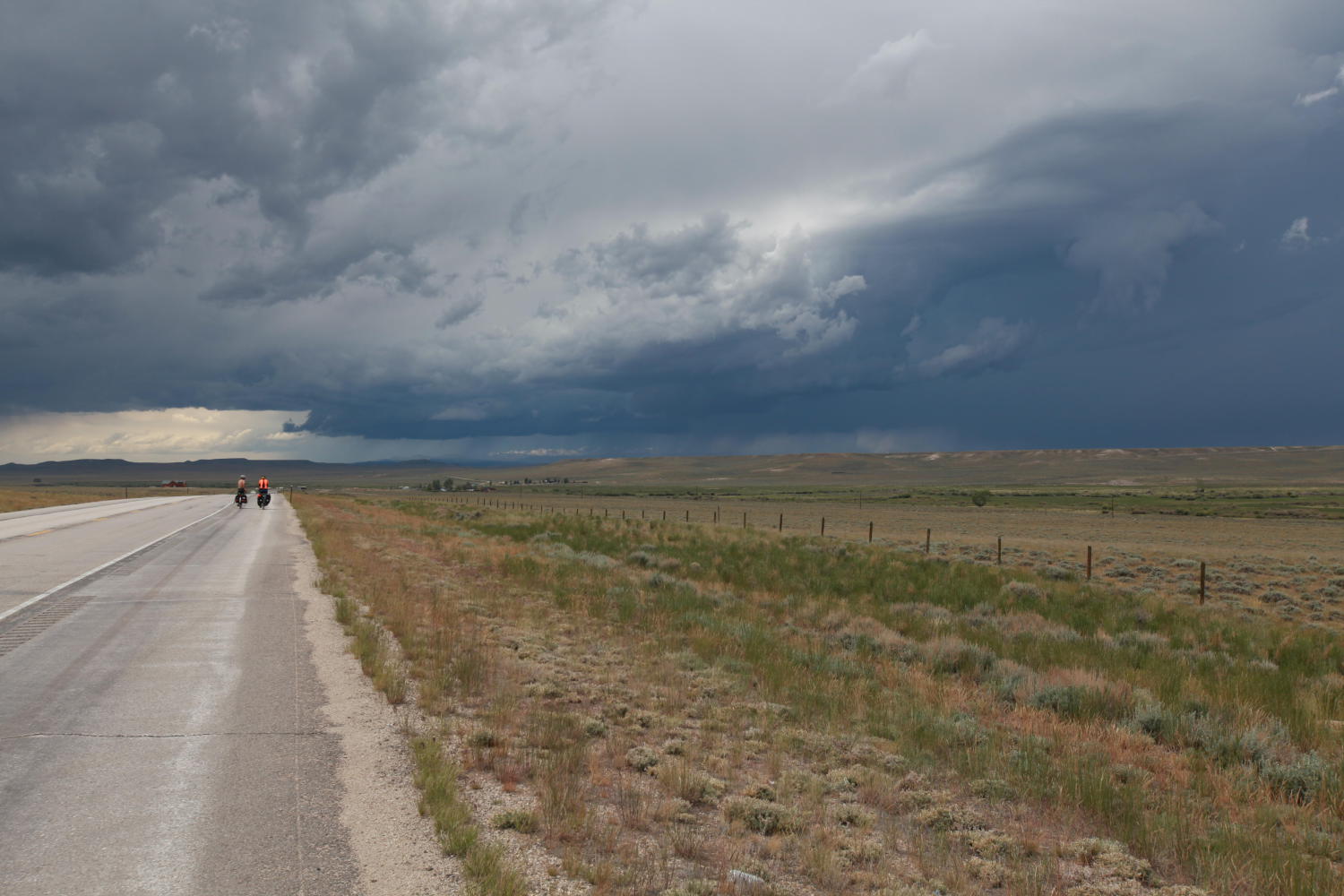 About 20 miles in, we enjoyed the unique cycling experience of legally riding a bike on an interstate. There are no other ways to get around this section of Wyoming, so cyclists are allowed. I can say I never want to do it again. All was well and good until road construction dropped the wide shoulder and squeezed us down to one lane.