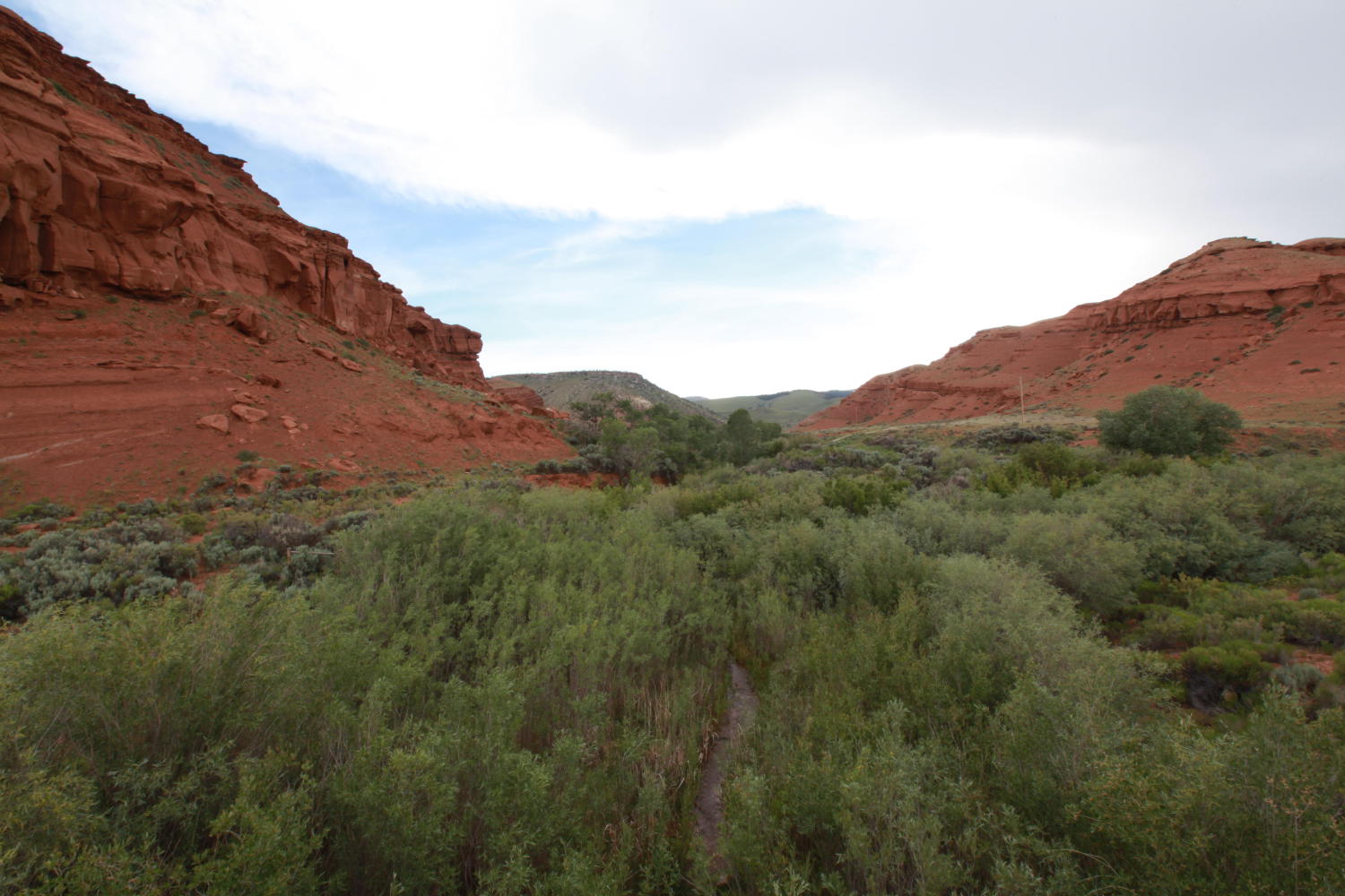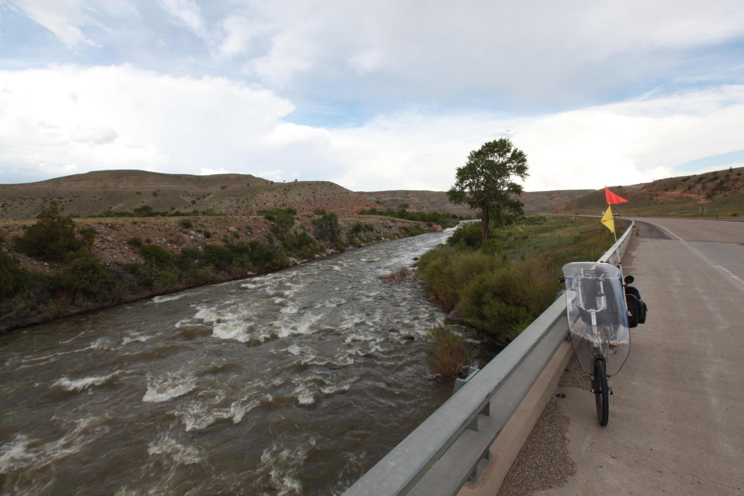 We began our journey by cycling through the Wind River Indian Reservation. The landscape varied from lush and flat along the river valleys to arid and not quite hilly. There were lots of truncated hills, forming tiny plateaus.